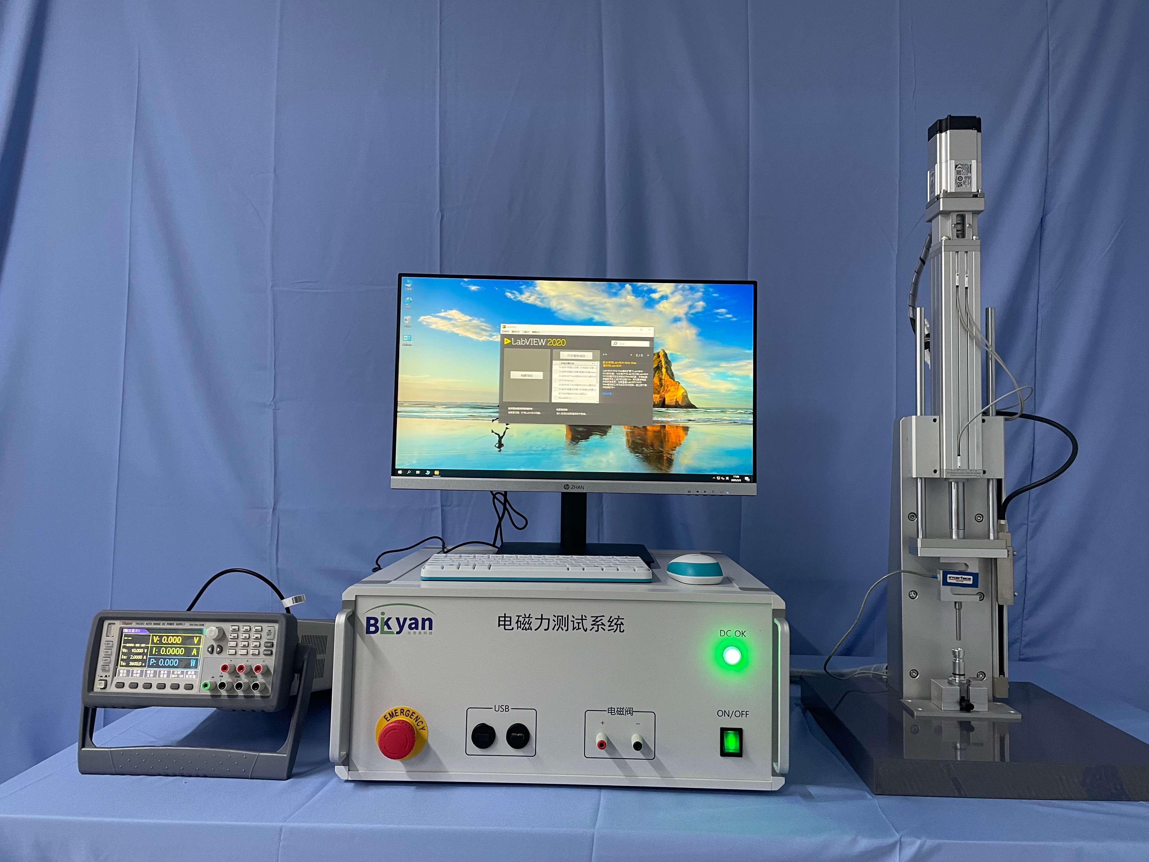 电磁阀电磁力测试系统适用于各种电磁阀、开关阀(力-位移-电压-电流)关系曲线测试。电磁阀各种电压、电流条件下,冲击力、保持力、及按设定频率下耐久测试等。